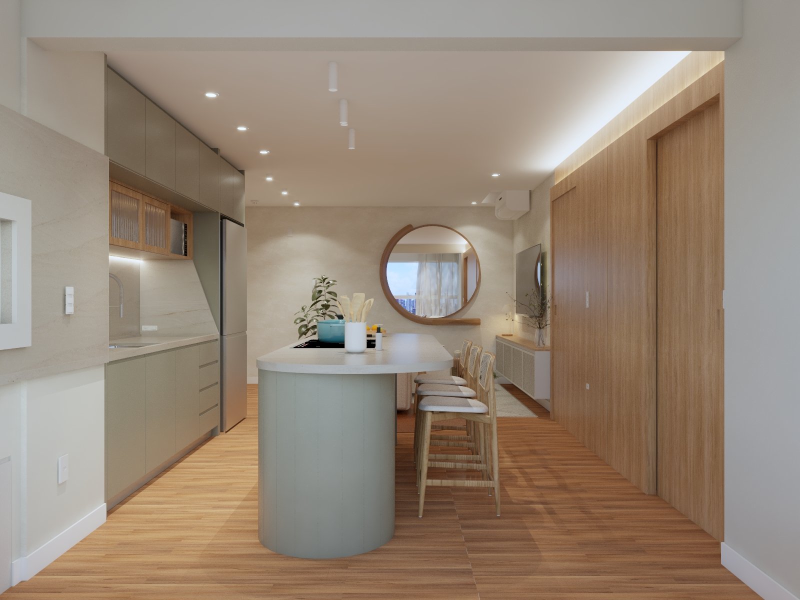 Um apartamento com toque de brasilidade para o primeiro imóvel de uma jovem contemporânea localizado em Itajaí/SC. A funcionalidade e o aconchego traduzidos em traços orgânicos na medida, iluminação minimalista, cores e tons amadeirados para dar a personalidade aos ambientes deste projeto.