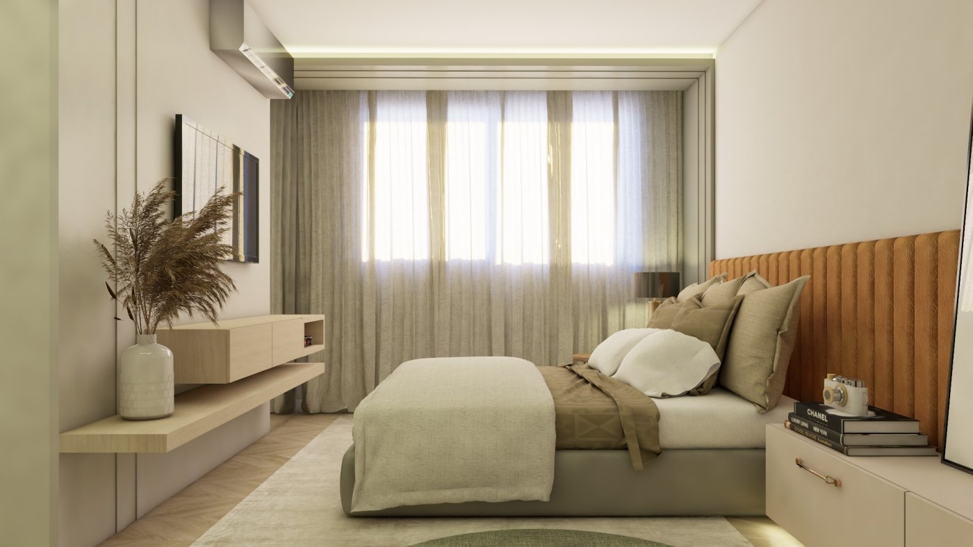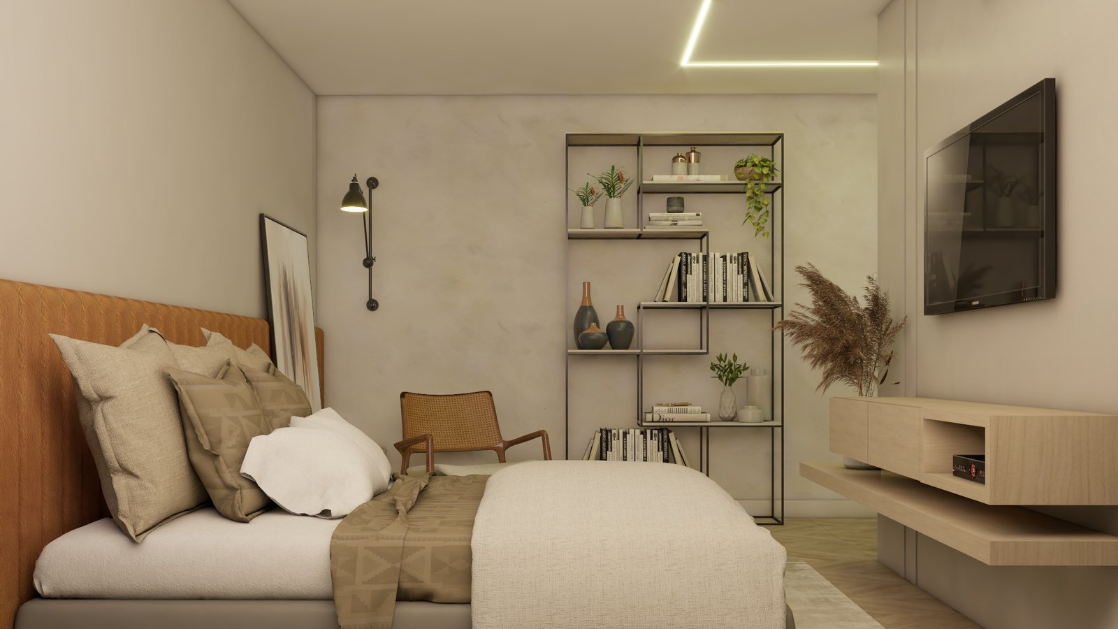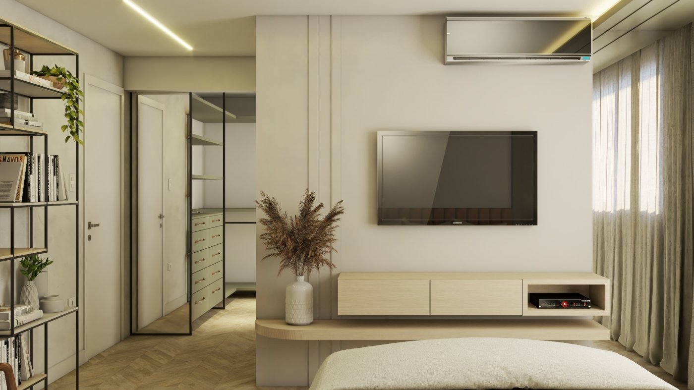 Planta baixa funcional com living integrado, quarto de hóspedes, suíte principal com uma ótima disposição e terceiro quarto, que foi aberto para a suíte e transformado em closet atendendo a necessidade da cliente.