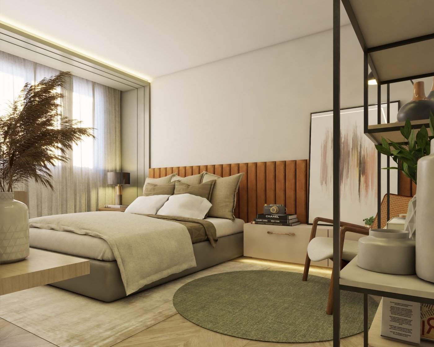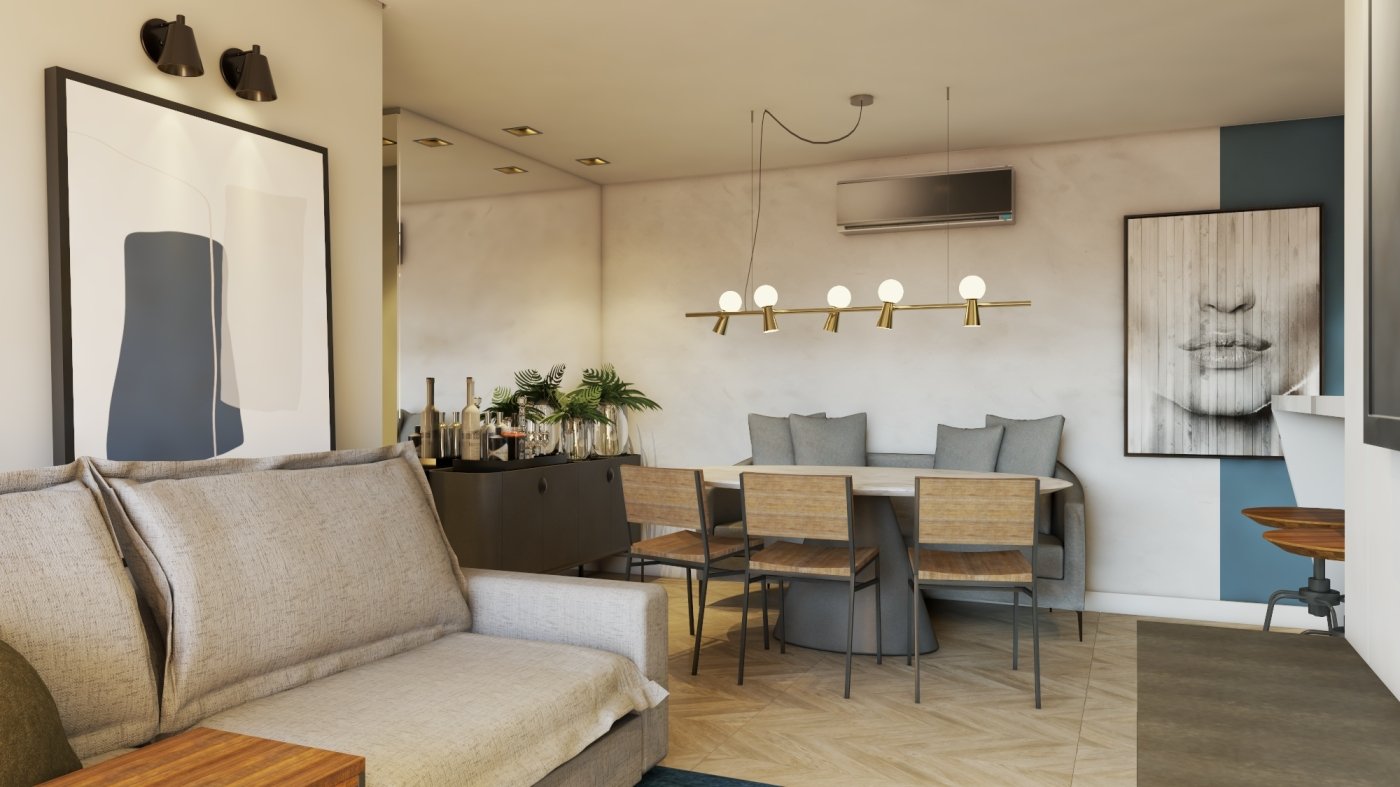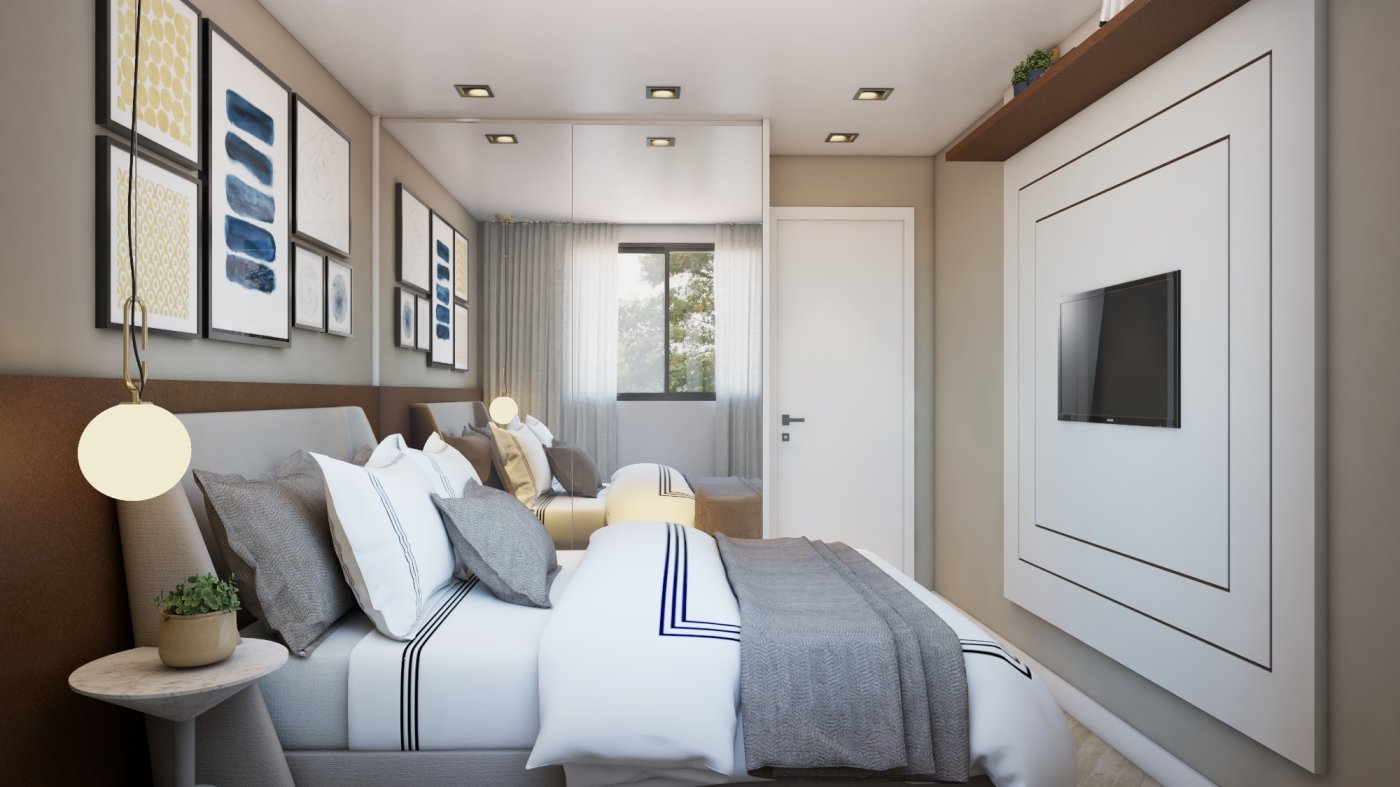 Planta baixa funcional com living integrado, quarto de hóspedes, suíte principal com uma ótima disposição e terceiro quarto, que foi aberto para a suíte e transformado em closet atendendo a necessidade da cliente.