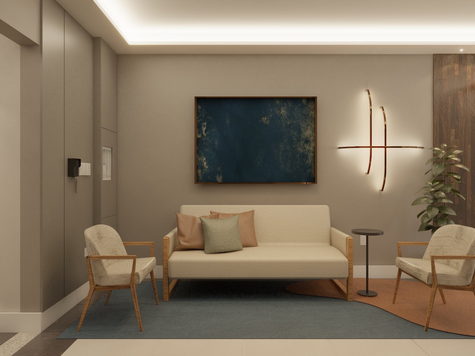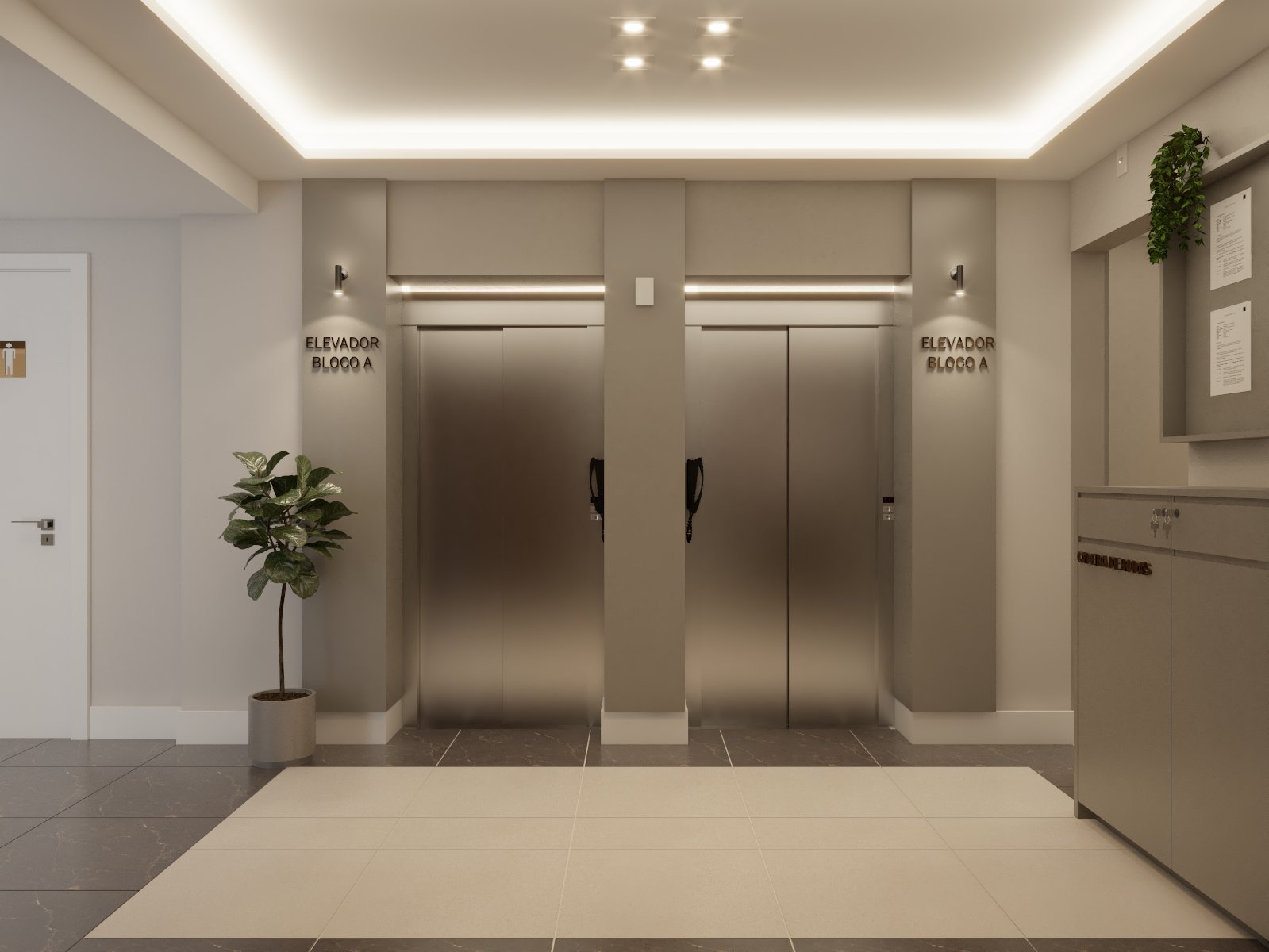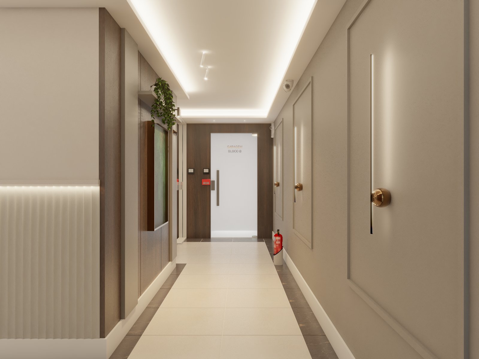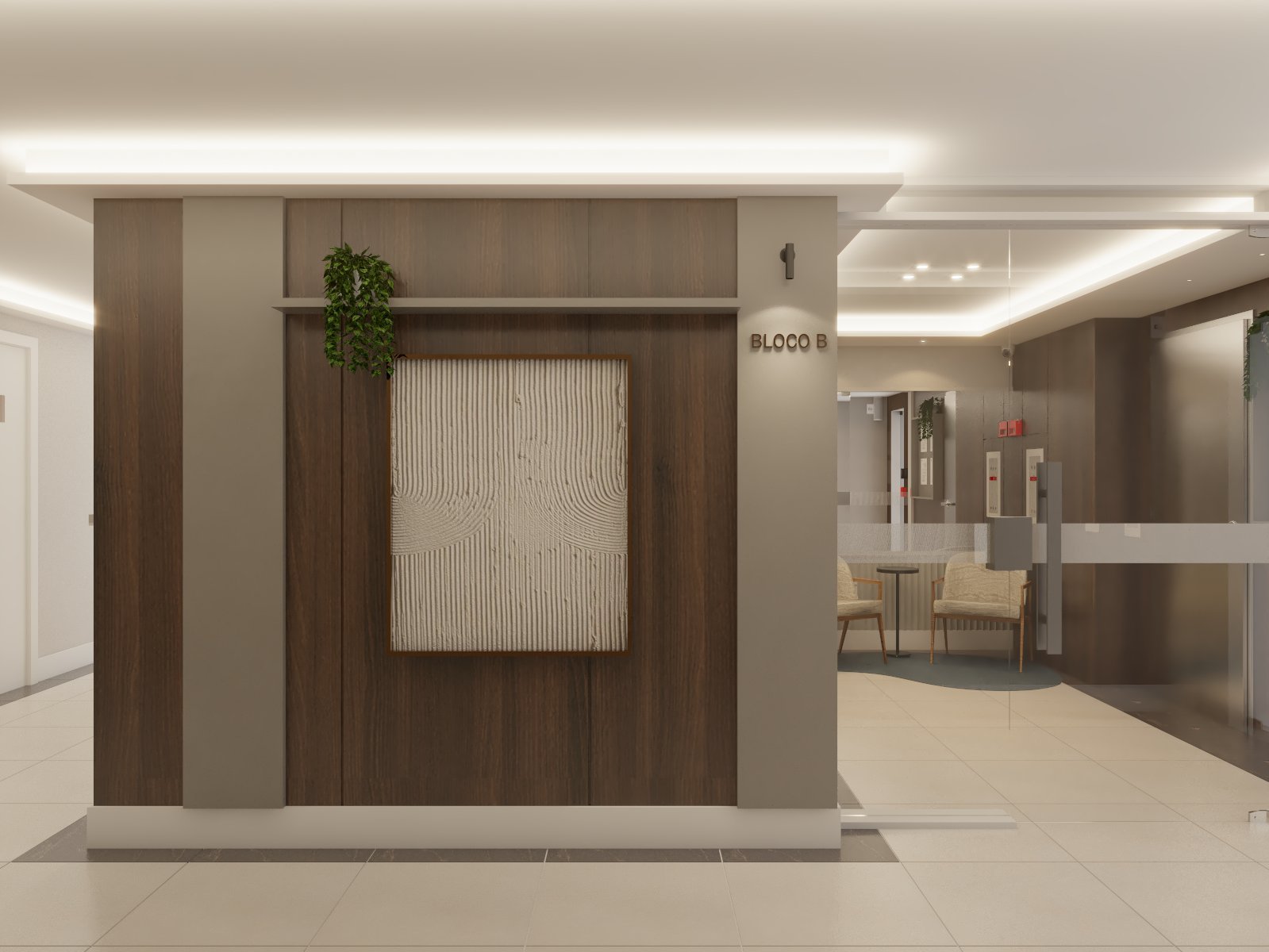 Projeto para reforma de Hall de Entrada dos blocos A e B de um edifício residencial localizado em Itajaí/SC. Neste projeto a necessidade era valorizar o espaço comum do prédio com a criação de um ambiente de espera e repaginação com nova pintura e painéis de linhas retas e tons neutros, trazendo um ar clássico, mas ao mesmo tempo atemporal associados a iluminação indireta.