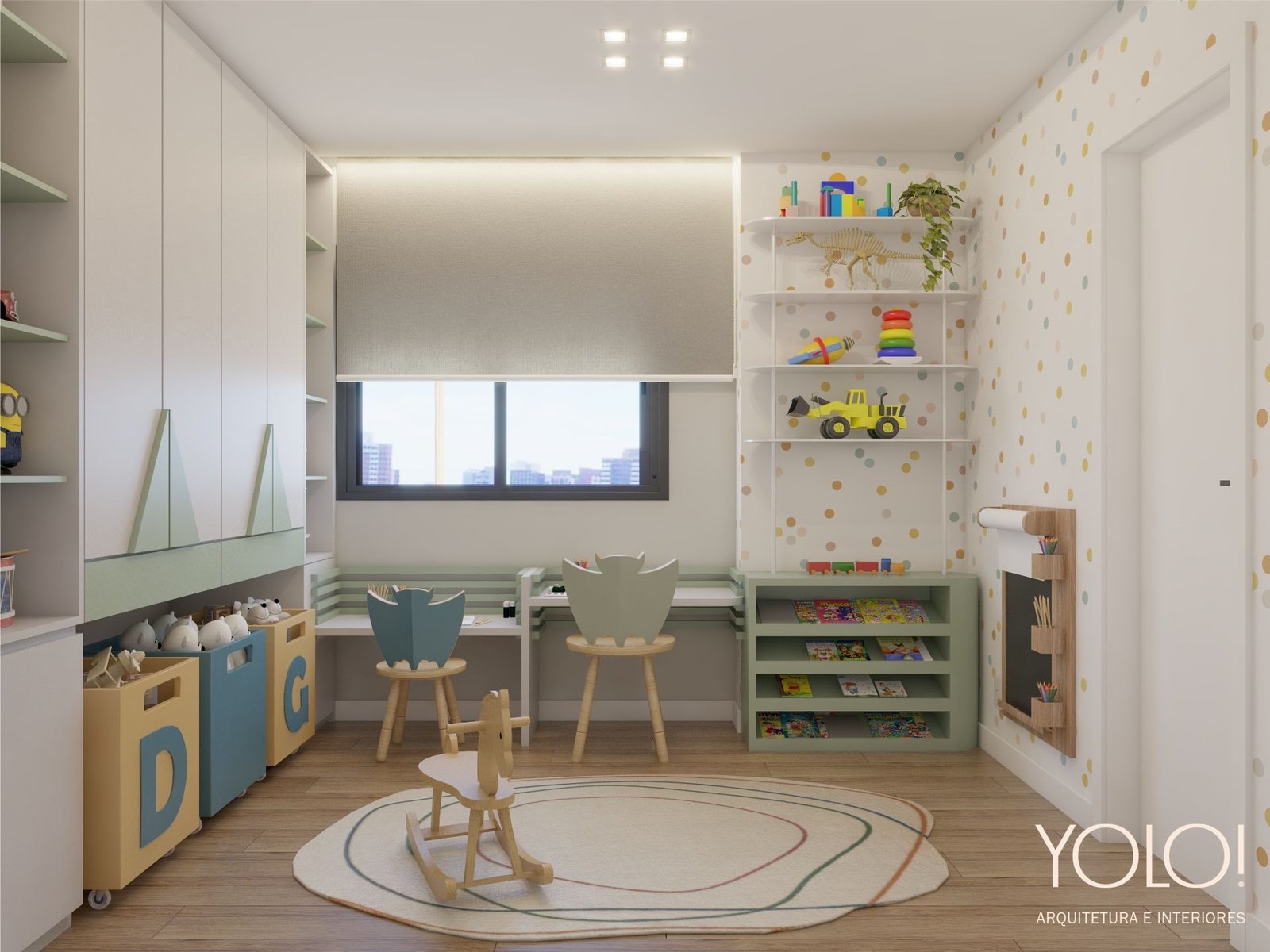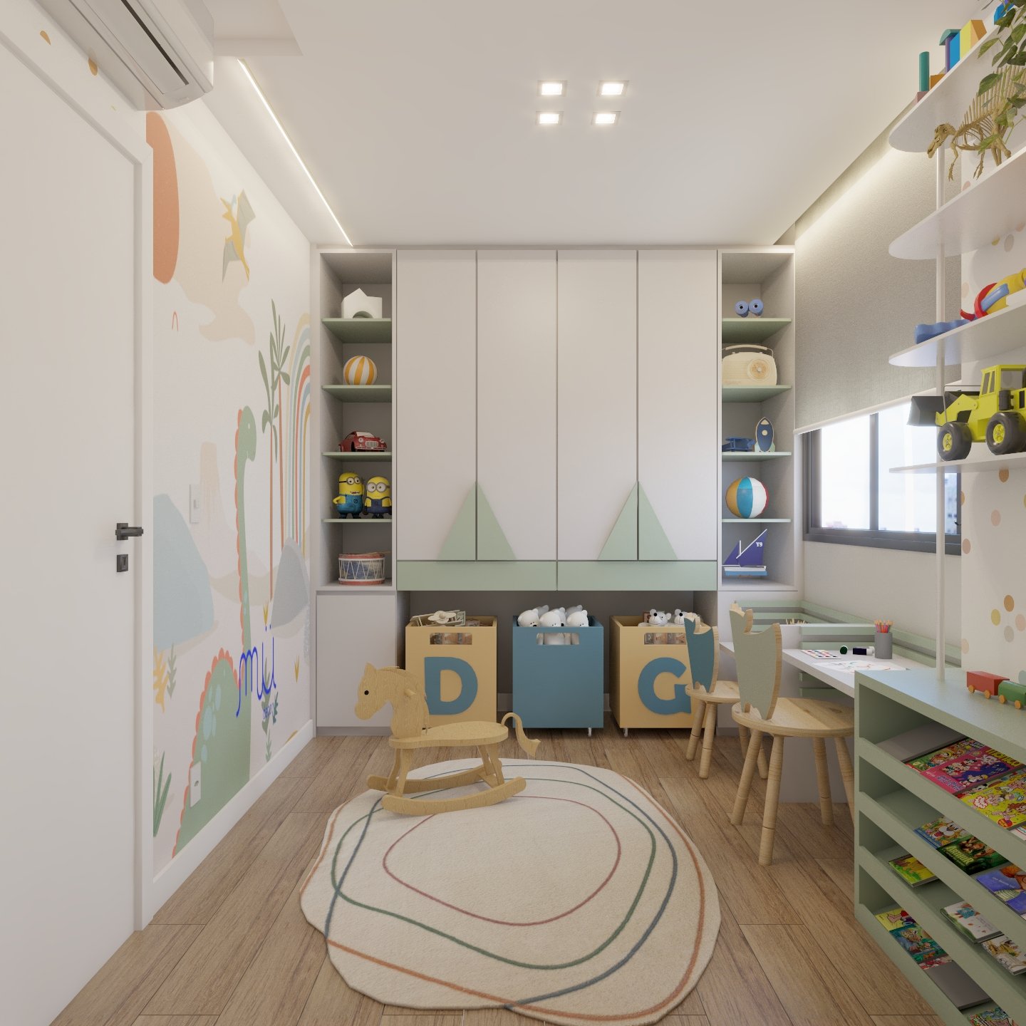 Um espaço onde imaginação e carinho se encontram, incentivando a leitura, descanso e crescimento, por meio de cores e texturas. A bancada evolutiva adapta-se às fases da infância, garantindo funcionalidade e conforto para diferentes momentos da vida.