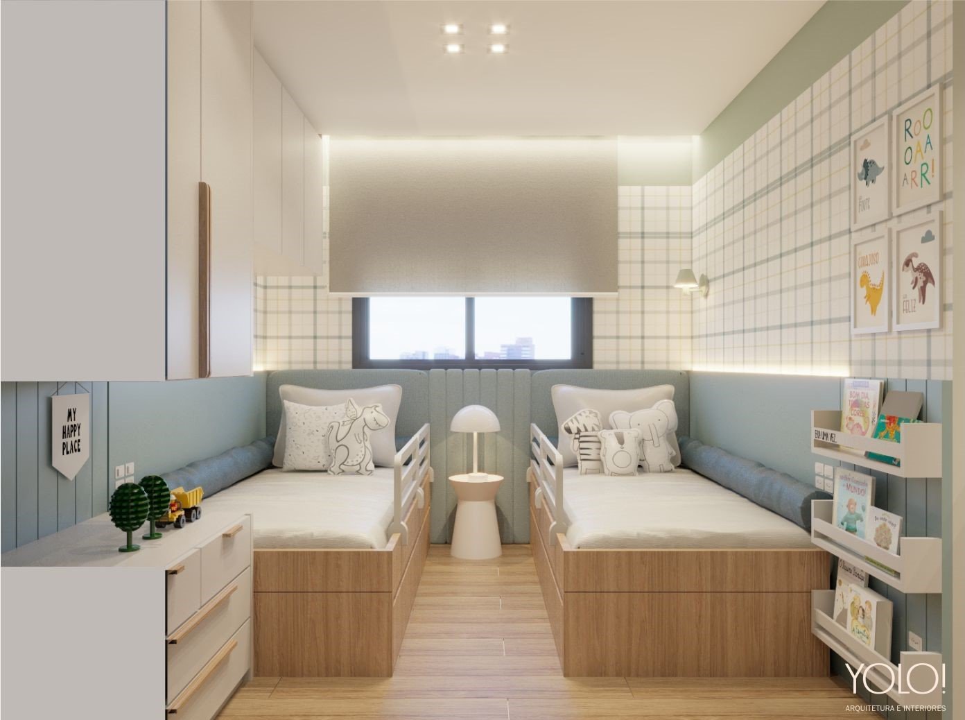 Para o projeto localizado em Itajaí/SC, “Laços que crescem juntos” foi o conceito que criamos para o quarto e brinquedoteca desses dois irmãos, com apenas dois anos de diferença.